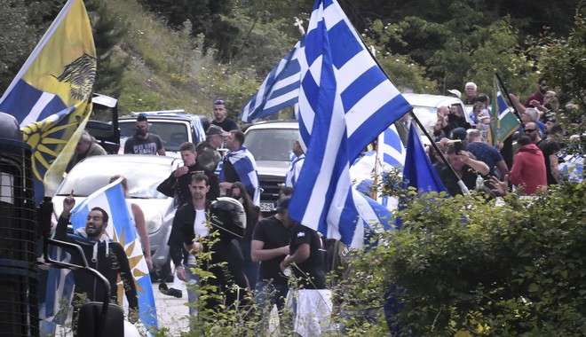 Δεκάδες πούλμαν μετέφεραν τους διαδηλωτές στο σημείο του συλλαλητηρίου. Ομάδες διαδηλωτών επιχείρησαν να προσεγγίσουν όσο περισσότερο γίνεται το χωριό Ψαράδες, στο σημείο δηλαδή στο οποίο οι δύο πρωθυπουργοί υπέγραψαν τη συμφωνία, δίχως αυτό να γίνει εφικτό.