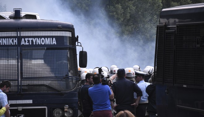 Στο σημείο επικράτησε ένταση ανάμεσα στις δύο πλευρές, με τους διαδηλωτές να εκτοξεύουν αντικείμενο και τις αρχές να απαντούν κάνοντας χρήση χημικών.
