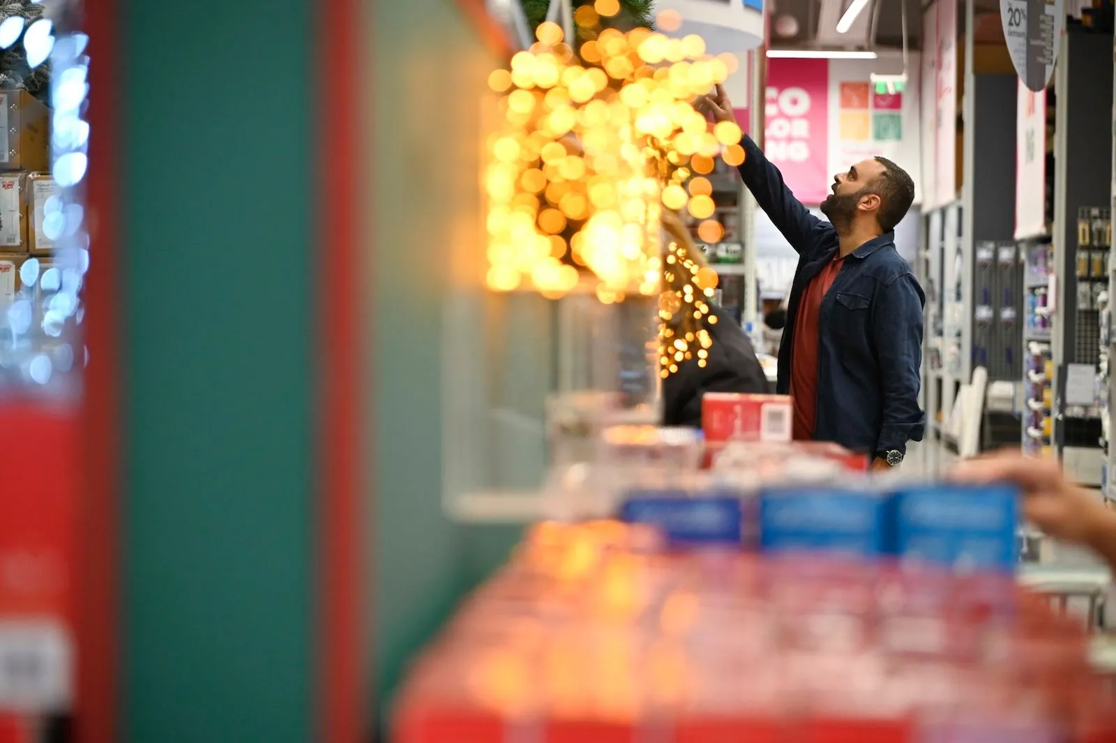 Η περιήγησή μου στους διαδρόμους των Χριστουγεννιάτικων του Praktiker ξεκινά πάντα με ενθουσιασμό. Δέντρα όλων των μεγεθών και χρωμάτων, από τα μικρά slim για στενούς χώρους, μέχρι τα εντυπωσιακά και γεμάτα όγκο, όπως το Slivertip που φτάνει τα 2 μέτρα και 40 εκατοστά. Στο διάδρομο με τα λαμπάκια συναντώ τον Χρήστο Χατζηιωάννου, τον απόλυτο tech lover, ο οποίος, όπως κάθε χρόνο, υπερασπίζεται τη δική του «ιεροτελεστία»: τη στιγμή που ανάβουν τα λαμπάκια στο δέντρο.