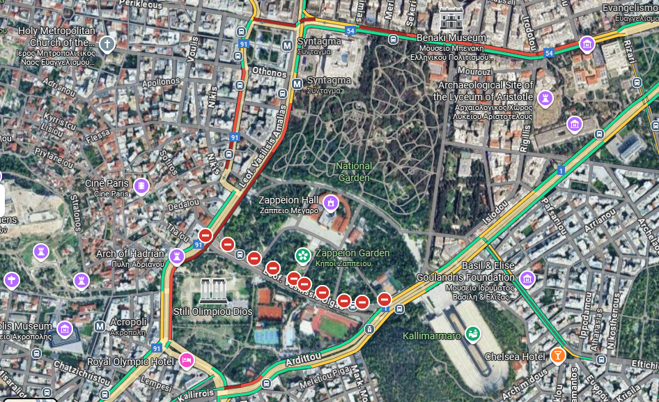 Συγκεκριμένα, στη Λεωφόρο Αμαλίας, στο ύψος των Στηλών του Ολυμπίου Διός, κεραίες τρόλεϊ έπεσαν σε ΙΧ αυτοκίνητο και μοτοσικλέτα.
