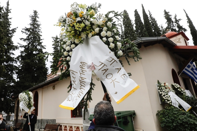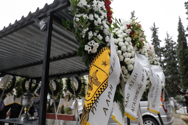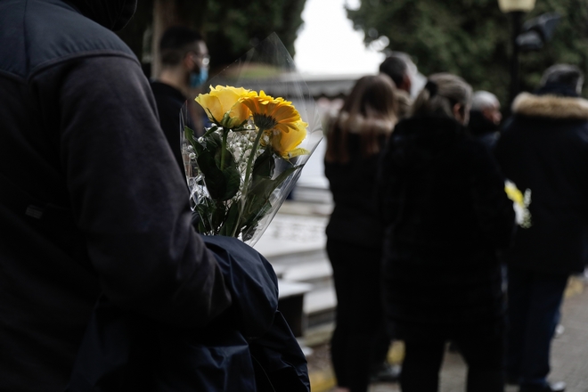 Κόσμος με λευκά γαρίφαλα και τριαντάφυλλα στα χέρια αποχαιρέτησε στον Ιερό Ναό Αγίου Αθανασίου τον 19χρονο φίλαθλο που χάθηκε τόσο άδικα.