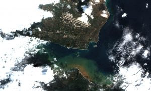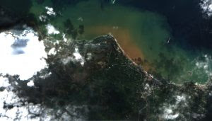 Ο δορυφόρος κατέγραψε την αλλαγή του χρώματος της επιφάνειας της θάλασσας από τις απορροές χειμάρρων, αλλά ακόμη και τις περιοχές που βρίσκεται φυτοπλαγκτόν.
