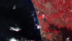Αν πάμε λίγο ανατολικότερα στα Γλυκά Νερά στα Σφακιά θα δούμε και πάλι το χώμα που έχει παρασυρθεί και διακρίνεται μέσα στη θάλασσα . Σημειώνουμε οτι με τις μεγάλες δυνατότητες των δορυφόρων μπορεί να επιτευχθεί βελτίωση των γεωργικών καλλιεργειών και των αστικών χρήσεων γης, η επιτήρηση των δασών και εν γένει της βιοποικιλότητας, η ανίχνευση της ρύπανσης στην ατμόσφαιρα, στις λίμνες και στις παράκτιες περιοχές, η καταγραφή των φυσικών καταστροφών (πλημμύρες, ηφαίστεια, κατολισθήσεις κ.α.)