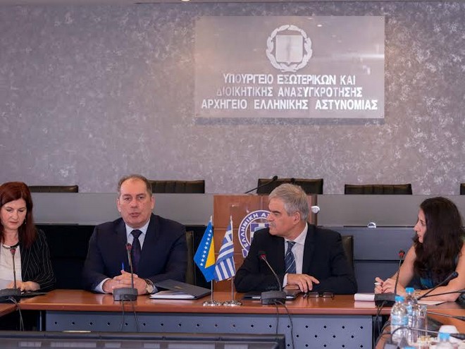 Συνάντηση μεταξύ του Αναπληρωτή Υπουργού Προστασίας του Πολίτη Νίκου Τόσκα με τον Υπουργό Ασφάλειας της Βοσνίας -Ερζεγοβίνης Dragan Mectic και υπογραφή Εφαρμοστικού Πρωτοκόλλου πραγματοποιήθηκε σήμερα στο Υπουργείο Προστασίας του Πολίτη.