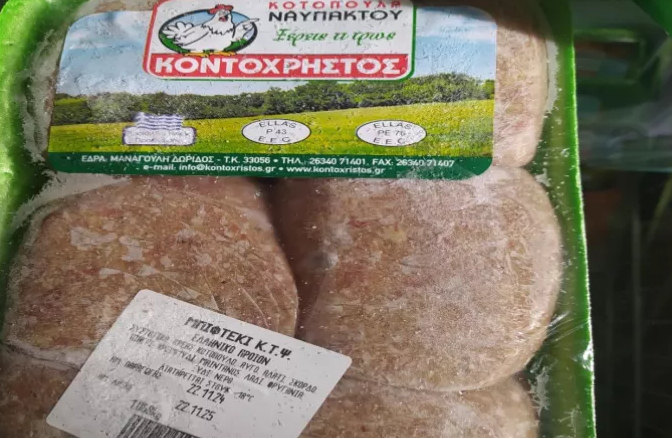 Πρόκειται για κατεψυγμένο μπιφτέκι κοτόπουλο, με ημερομηνία παραγωγής 22.11.2024 και ημερομηνία ανάλωσης 22.11.2025, που παράγεται από την επιχείρηση «Κοτόπουλα Ναυπάκτου – Κοντοχρήστος» και σε συνεργασία με τo Εργαστήριo Δοκιμών & Ερευνών Τροφίμων Αθήνας του ΕΦΕΤ, διαπιστώθηκε η παρουσία του παθογόνου μικροοργανισμού Salmonella spp.