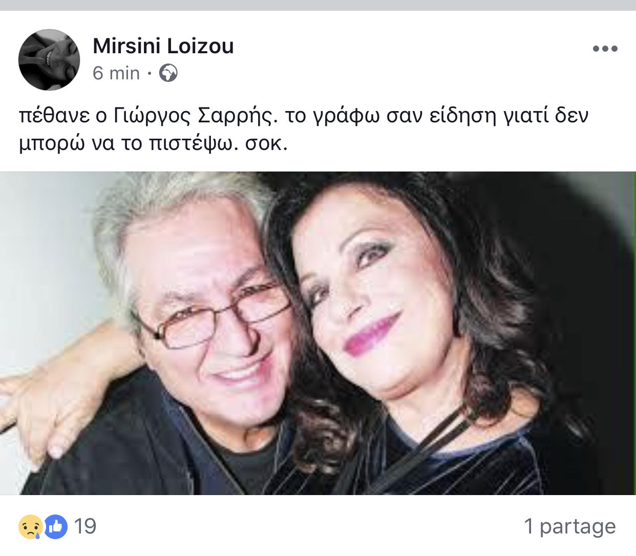 Την είδηση μετέφερε μέσω Facebook η κόρη του Μάνου Λοΐζου, Μυρσίνη.