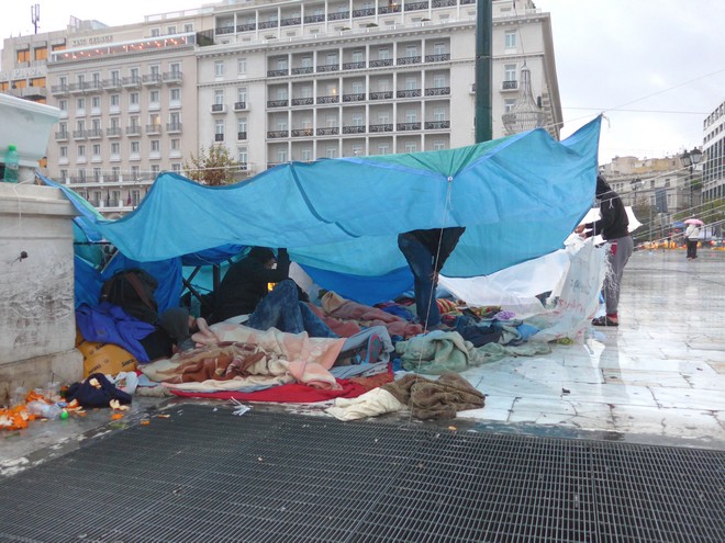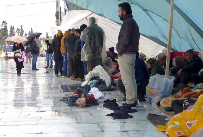 Ούτε η σημερινή κακοκαιρία κατάφερε να συγκινήσει τους υπεύθυνους ώστε να δώσουν λύση στο πρόβλημα των μεταναστών που διαμαρτύρονται εδώ και 20 μέρες στο Σύνταγμα