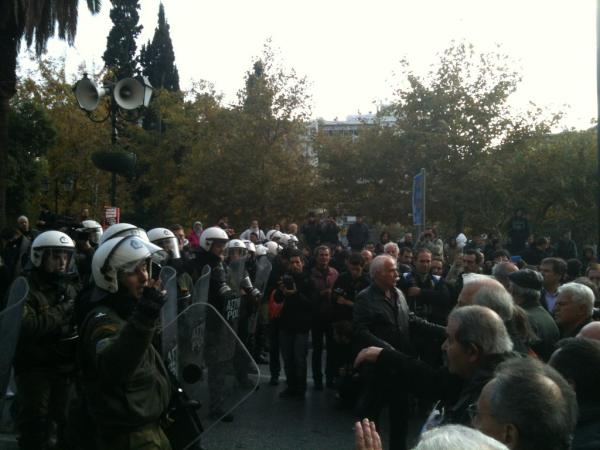15:58 Μικροένταση στο ύψος της Μ. Βρετανίας όπου τα ΜΑΤ εμποδίζουν μερίδα διαδηλωτών, ηλικιωμένων αντιστασιακών, να περάσουν στο Σύνταγμα, θέλοντας να τους σπρώξουν προς την Πανεπιστημίου.