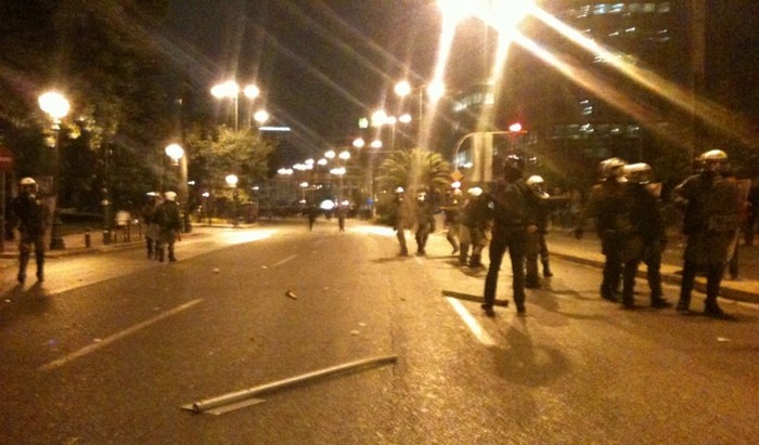 18:08 Ένταση τώρα στην πλατεία Μαβίλη. Πέτρες και ξύλα από νεαρούς προς τις διμοιρίες των ΜΑΤ.