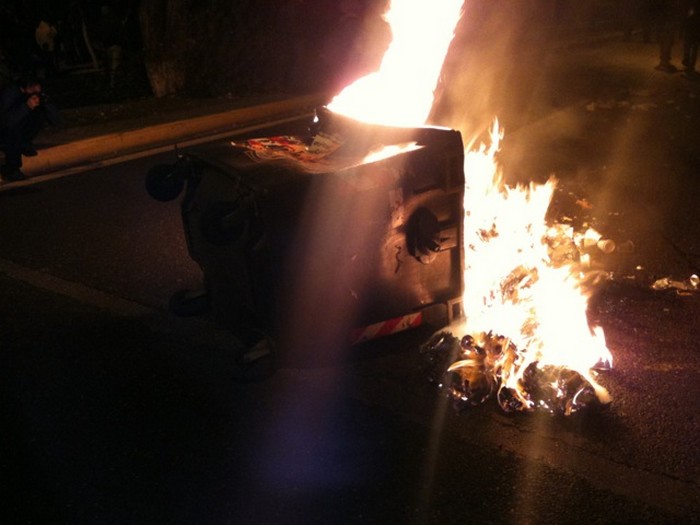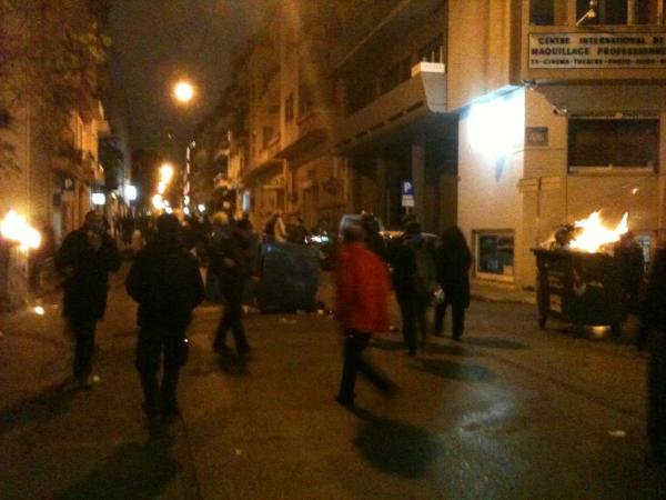 18:20 Οδοφράγματα έστησαν οι κουκουλοφόροι. Αποπνικτική η ατμόσφαιρα, λόγω των δακρυγόνων.
