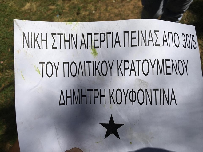 Κατά την αποχώρησή τους πέταξαν τρικάκια με συνθήματα υπέρ του Δημήτρη Κουφοντίνα, στα οποία υπέγραφαν με το “Α”, των αντιεξουσιαστών και όχι ως “Ρουβίκωνας” ή άλλες ομάδες.