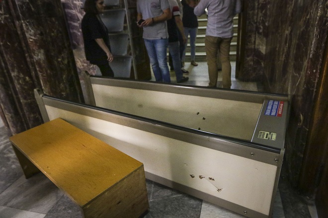 Οι κουκουλοφόροι προκάλεσαν φθορές στην είσοδο της Γενικής Γραμματείας και πέταξαν τρικάκια με συνθήματα υπέρ του Δημήτρη Κουφoντίνα