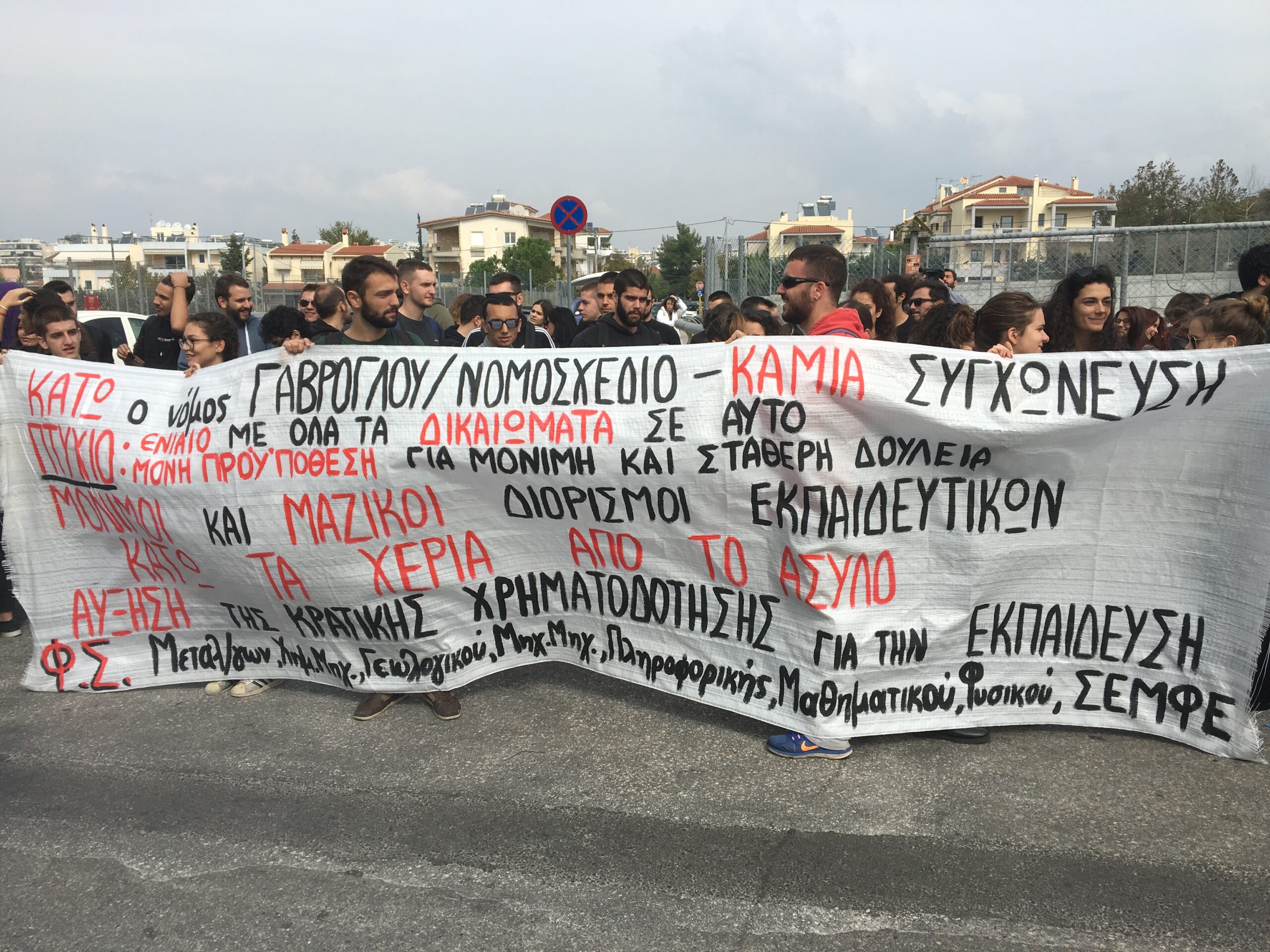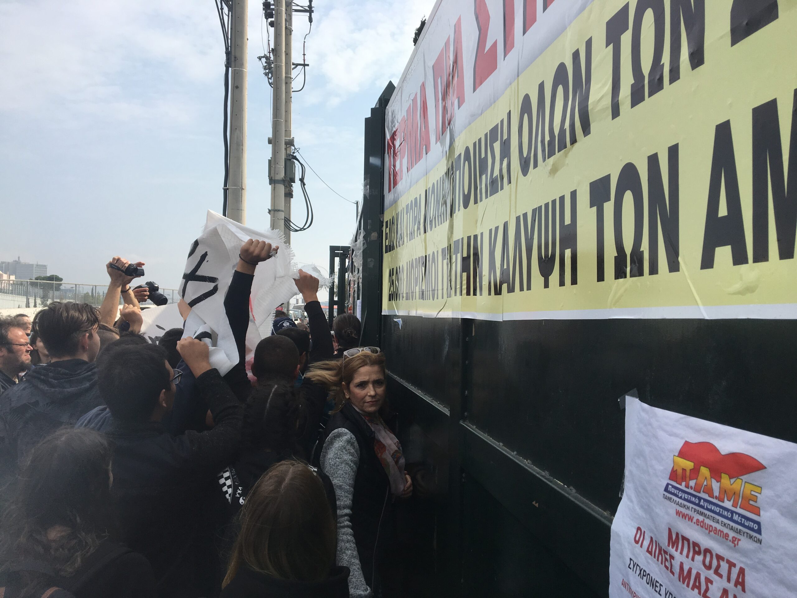 διαδηλωτές έξω από την πόρτα του υπουργού Παιδείας