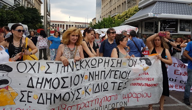 Συλλαλητήριο εκπαιδευτικών προσχολικής και νηπιακής ηλικίας που στο κέντρο της Αθήνας το μεσημέρι της Παρασκευής. Το News 24/7 βρίσκεται στο σημείο