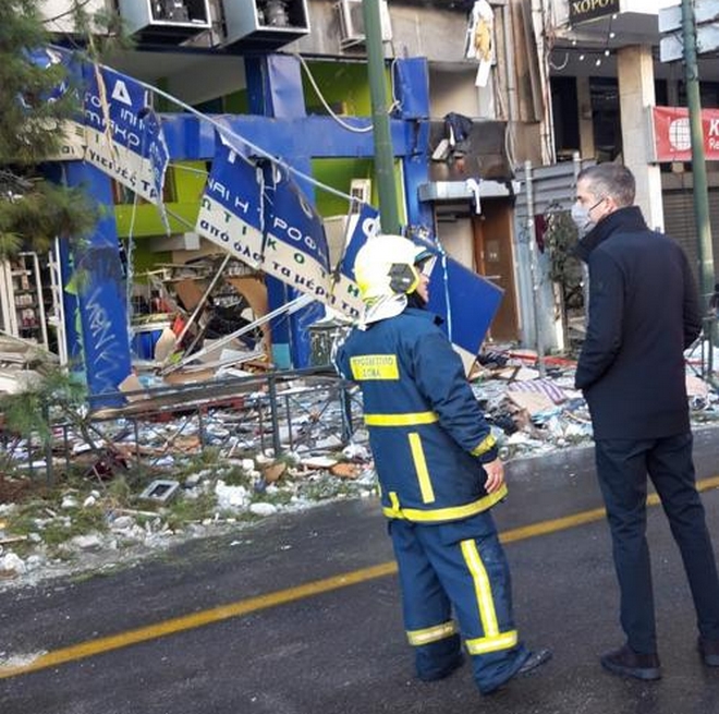 Στο ισόγειο χώρο στεγαζόταν ένα κατάστημα βιολογικών προϊόντων, στον ημιώροφο που προκλήθηκε η έκρηξη ήταν το διαμέρισμα ενός άντρα, ο οποίος και τραυματίστηκε και έχει μεταφερθεί στο «Λαϊκό» Νοσοκομείο. Οι αξιωματικοί της Πυροσβεστικής εκτιμούν πως η έκρηξη έγινε από διαρροή υγραερίου ή φυσικού αερίου και η έρευνα του Ανακριτικού Τμήματος βρίσκεται σε εξέλιξη.