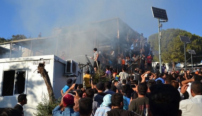 Η σορός μιας απανθρακωμένης γυναίκας που μεταφέρθηκε στις 7 το απόγευμα της Κυριακής από ιδιώτη στο Νοσοκομείο Μυτιλήνης, και η σορός ενός απανθρακωμένου παιδιού που έβγαλαν μέσα σε μια κουβέρτα πρόσφυγες και μετανάστες από το τμήμα του καταυλισμού που κάηκε στην κάτω πύλη του Κέντρου Υποδοχής και Ταυτοποίησης (ΚΥΤ), είναι ο μέχρι στιγμής απολογισμός των όσων συμβαίνουν στον καταυλισμό της Μόριας.