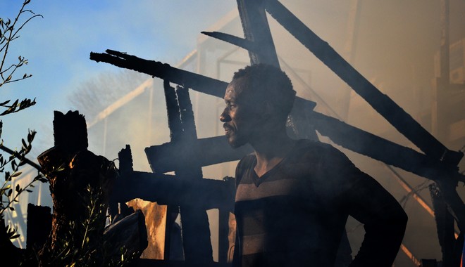 Για άγνωστους λόγους, γύρω στις 5 το απόγευμα της Κυριακής ξέσπασαν δυο φωτιές. Μια σε ελαιοκτήματα έξω από τον καταυλισμό, περί τα 400 μέτρα από τις σκηνές στον εξωτερικό χώρο του ΚΥΤ και μια στη «ζώνη 4», όπου σε διώροφους οικίσκους διαμένουν κυρίως Αφρικανοί.