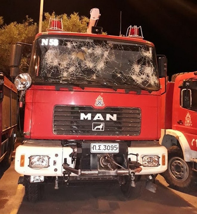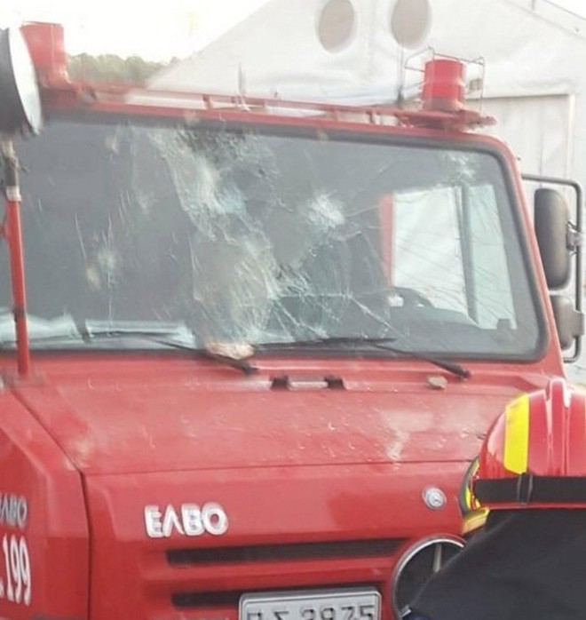 Κι ενώ η φωτιά στα ελαιοκτήματα σβήστηκε πολύ γρήγορα, η φωτιά στους οικίσκους του ΚΥΤ επεκτάθηκε και κατέκαψε μεγάλο τμήμα του όλου χώρου. Το σβήσιμο της δε έγινε μετ’ εμποδίων. Μάλιστα, οι πυροσβέστες αναγκάστηκαν να εγκαταλείψουν το μέτωπο δεχόμενοι επίθεση από εκατοντάδες πρόσφυγες και μετανάστες, οι οποίοι και κατέστρεψαν τουλάχιστον δυο πυροσβεστικά οχήματα.