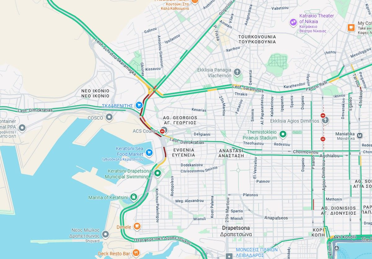 Στο σημείο έχει δημιουργηθεί κυκλοφοριακό κομφούζιο, ενώ τροχονόμοι έχουν τοποθετηθεί κατά μήκος του Περιφερειακού της Δραπετσώνας για τη ρύθμιση της κίνησης.