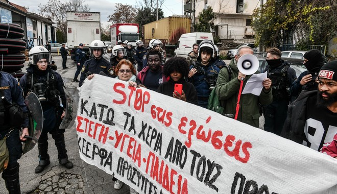 Συγκέντρωση πραγματοποιήθηκε έξω από τη δομή προσφύγων του Ελαιώνα κατά της παράδοσης της δομής στον Δήμο Αθηναίων και τον εκτοπισμό εκατοντάδων προσφύγων.