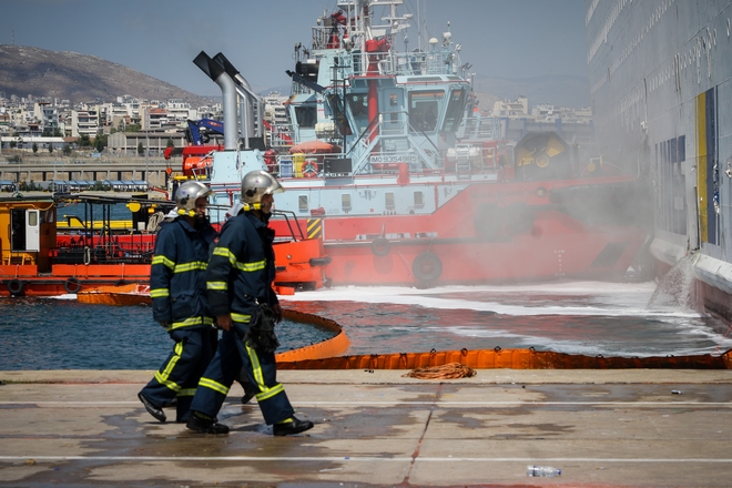 “Ελευθέριος Βενιζέλος”: Συνεχίζεται η κατάσβεση στο πλοίο – Βγάζουν τις καμένες νταλίκες από τα γκαράζ