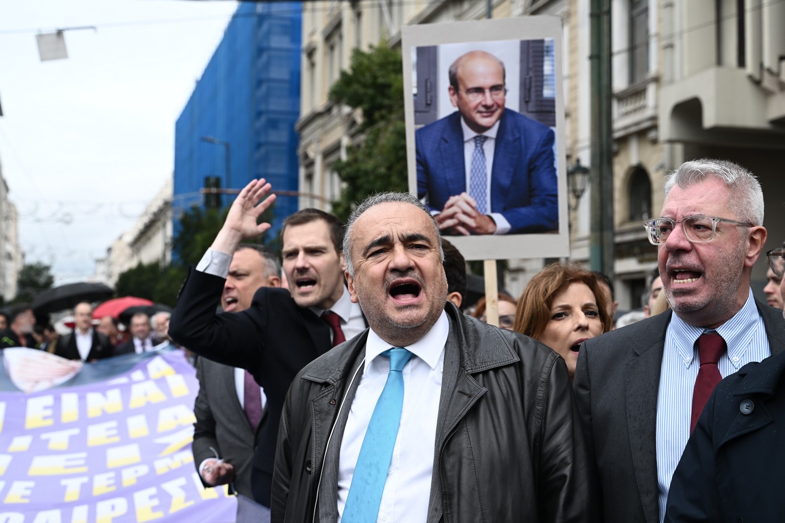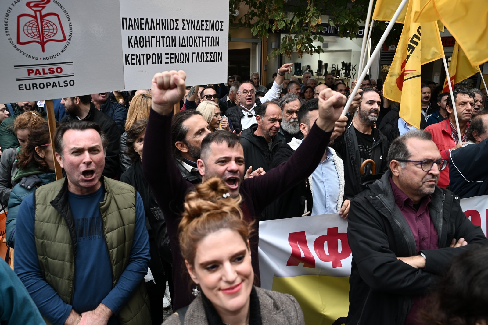 Διαμαρτυρόμενοι για το νέο φορολογικό νομοσχέδιο της κυβέρνησης, ελεύθεροι επαγγελματίες πραγματοποίησαν πορεία έξω από το ΥΠΟΙΚ.
