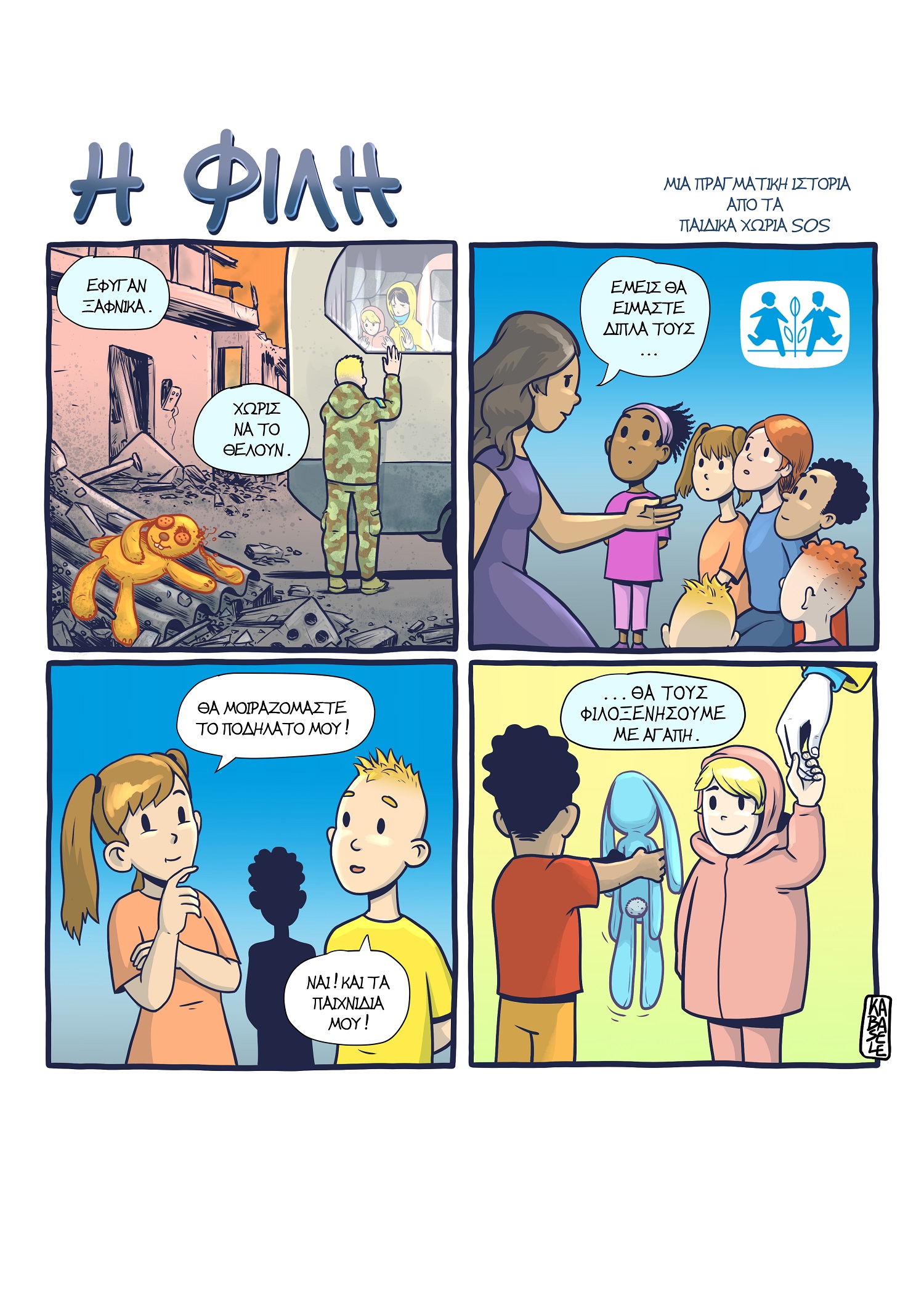Τα Παιδικά Χωριά SOS, σε συνεργασία με τον σκιτσογράφο Νίκο Καμπασελέ, εγκαινίασαν μία σειρά από κόμικς βασισμένα σε πραγματικές ιστορίες από τα Κέντρα και τα Χωριά, που λειτουργούν σε όλη την Ελλάδα, με τη δεύτερη κυκλοφορία τους να είναι αφιερωμένη στην Παγκόσμια Ημέρα Προσφύγων (20 Ιουνίου).