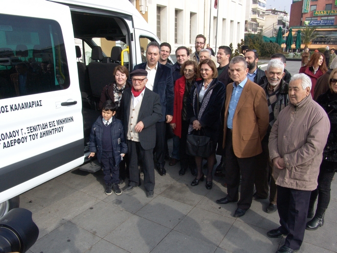 Ως μια πράξη αλληλεγγύης και κοινωνικής προσφοράς για τους συμπολίτες του, ο 87χρονος Νικόλαος Ξενιτίδης δώρισε την Πέμπτη σε ειδική εκδήλωση στον Δήμο Καλαμαριάς, δύο νέα, σύγχρονα mini bus, σε μια προσπάθεια να επαναλειτουργήσει σύντομα η δημοτική συγκοινωνία, που αναμένεται να εξυπηρετεί δωρεάν περισσότερους από 70.000 κατοίκους.