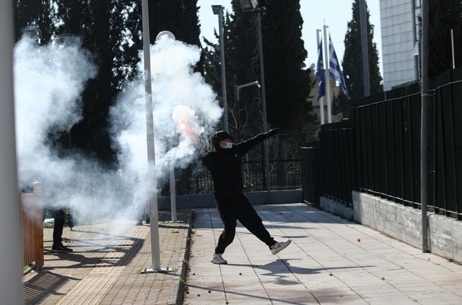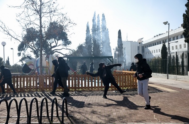 Ένταση σημειώθηκε νωρίτερα έξω από το υπουργείο Παιδείας στο Μαρούσι, ενώ βρίσκεται σε εξέλιξη πορεία διαμαρτυρίας μαθητών και εκπαιδευτικών για το άνοιγμα των σχολείων και τα πρωτόκολλα για την πανδημία του κορονοϊού.