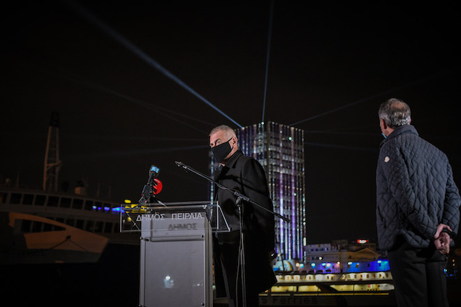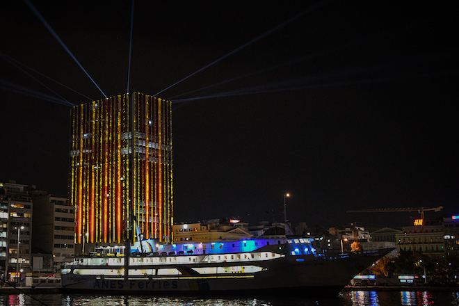 Η εντυπωσιακή φωταγώγηση του Πύργου του Πειραιά που είναι σήμα κατατεθέν για το μεγαλύτερο λιμάνι της χώρας, τράβηξε τα βλέμματα όλων, δίνοντας μία νότα χαράς και αισιοδοξίας.