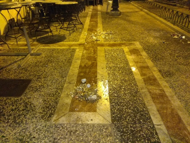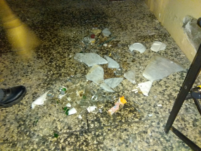 Από το επεισόδια, τρία άτομα τραυματίστηκαν και προκλήθηκαν ζημιές στην καφετέρια. Μέχρι να φτάσουν αστυνομικές δυνάμεις στο σημείο, οι ταραξίες είχαν απομακρυνθεί.
