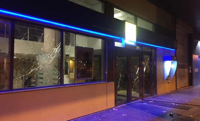 Ξαφνικά, νεαροί κουκουλοφόροι βγήκαν μέσα από την πορεία και επιτέθηκαν με βόμβες μολότοφ εναντίον των αστυνομικών στη συμβολή της Λ. Μεσογείων με την οδό Τρικάλων. Οι αστυνομικοί απάντησαν με χρήση χημικών και απώθησαν του διαδηλωτές, που απομακρύνθηκαν, κατεβαίνοντας την Λ. Αλεξάνδρας.
