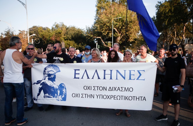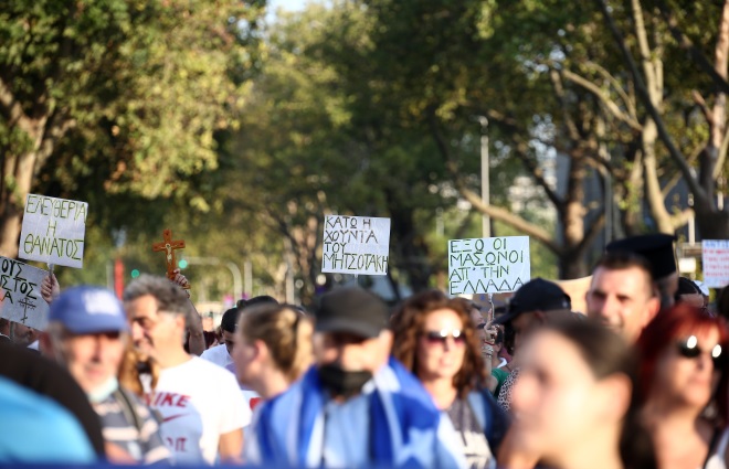 Σχεδόν 10.000 άνθρωποι που τάσσονται ενάντια στην υποχρεωτικότητα του εμβολιασμού πραγματοποίησαν πορεία διαμαρτυρίας στο κέντρο της Θεσσαλονίκης με το σύνθημα «κάτω τα χέρια απ’ τα παιδιά μας». Οι διαδηλωτές κρατούσαν πανό, πλακάτ, σταυρούς και ελληνικές σημαίες και φώναζαν «κάτω η χούντα του Μητσοτάκη», ενώ μάλιστα ζήτησαν από τον πρωθυπουργό να παραιτηθεί. Σύμφωνα με τ