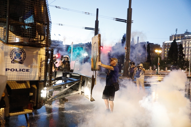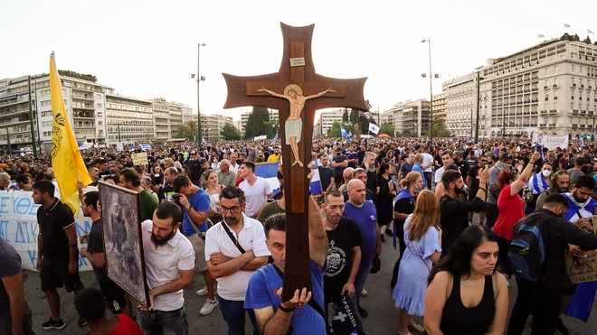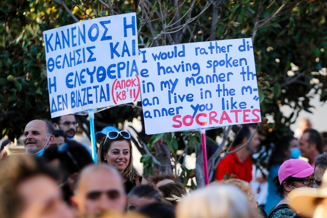Επεισόδια, δακρυγόνα και χημικά στη μεγάλη συγκέντρωση αντιεμβολιαστών στο κέντρο της Αθήνας, που περιελάμβανε Σωκράτη και σταυρούς. Δεκάδες προσαγωγές. Διαμαρτυρία και στη Θεσσαλονίκη.