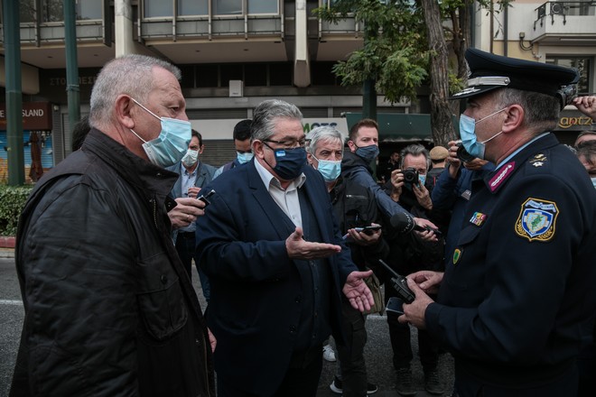 Οι αστυνομικές δυνάμεις απέρριψαν το αίτημα του Δημήτρη Κουτσούμπα που βρέθηκε στο σημείο για να γίνει πορεία απαντώντας στον γγ του ΚΚΕ ότι είναι παράνομο.
