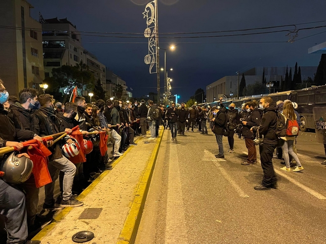 Φοιτητικοί σύλλογοι με σύνθημα “48 Νοέμβρηδες μετά, η συλλογική μνήμη παραμένει ζωντανή”, φορείς, κόμματα κι οργανώσεις της Αριστεράς, σωματεία και συλλογικότητες του αντιεξουσιαστικού χώρου συμμετείχαν στην πορεία, η οποία πραγματοποιήθηκε υπό δρακόντεια αστυνομικά μέτρα.