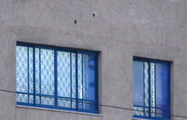 (Τρύπες από καλάσνικοφ σε κεντρικό παράθυρο της πρεσβείας του Ισραήλ στο Ψυχικό)