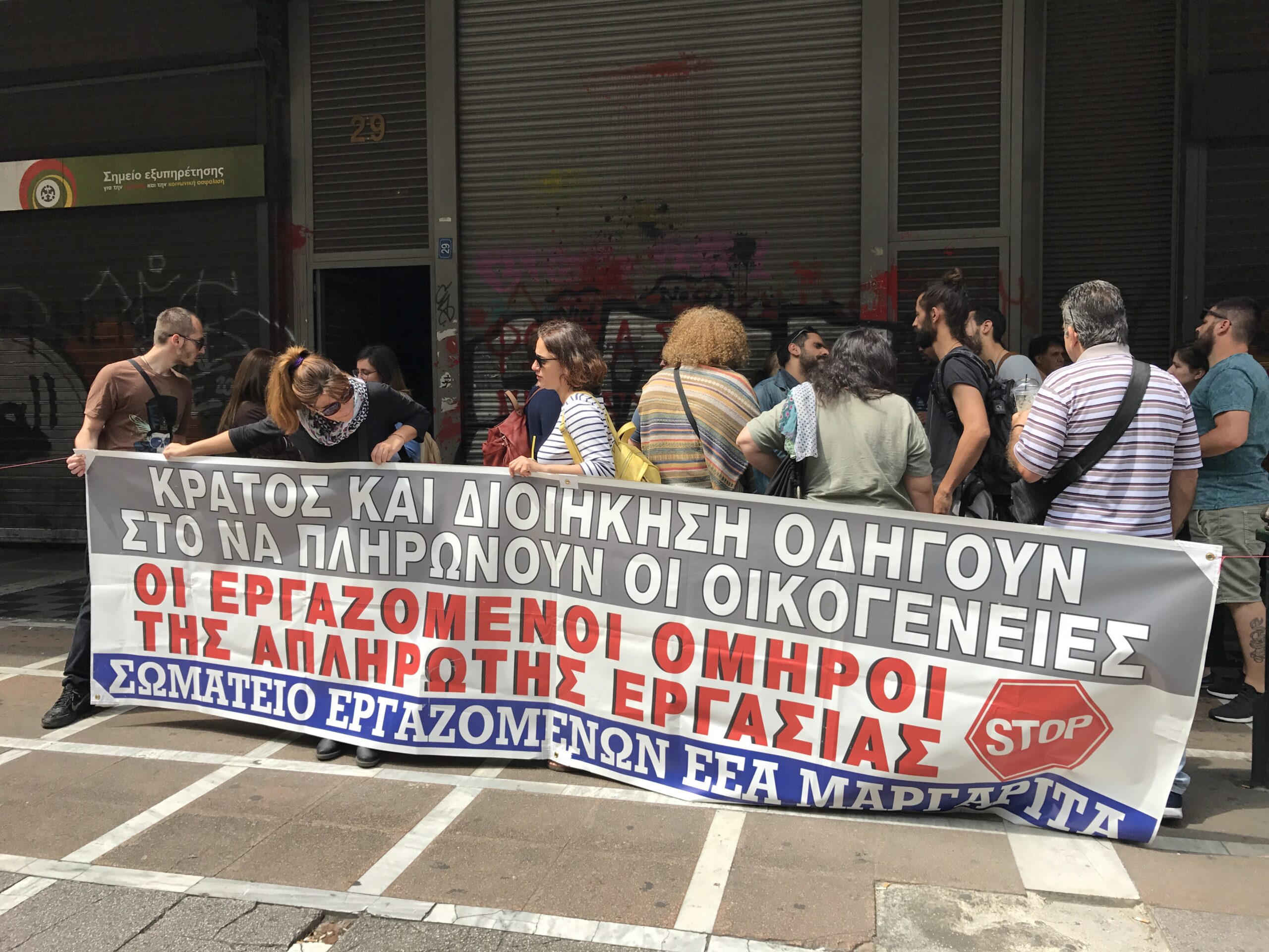Με την διαμαρτυρία τους, ζητούν την άμεση αποπληρωμή των δεδουλευμένων τους, ενώ η αναπληρώτρια υπουργός Εργασίας κ. Θεανώ Φωτίου δέχτηκε στο γραφείο της αντιπροσωπεία τεσσάρων εργαζομένων, προκειμένου να ακούσει τα αιτήματά τους.