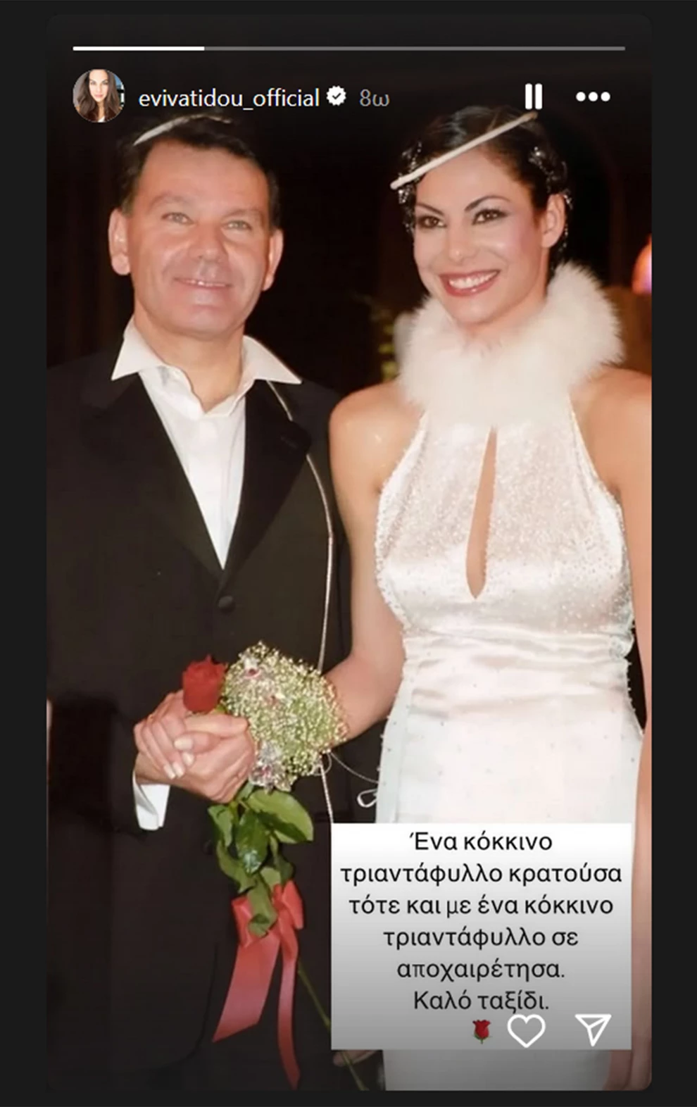 Σε μια ακόμα συγκινητική ανάρτηση προχώρησε η Εύη Βατίδου λίγες ώρες μετά την κηδεία του Αλέξη Κούγια. Η φωτογραφία από τον γάμο και το κόκκινο τριαντάφυλλο.