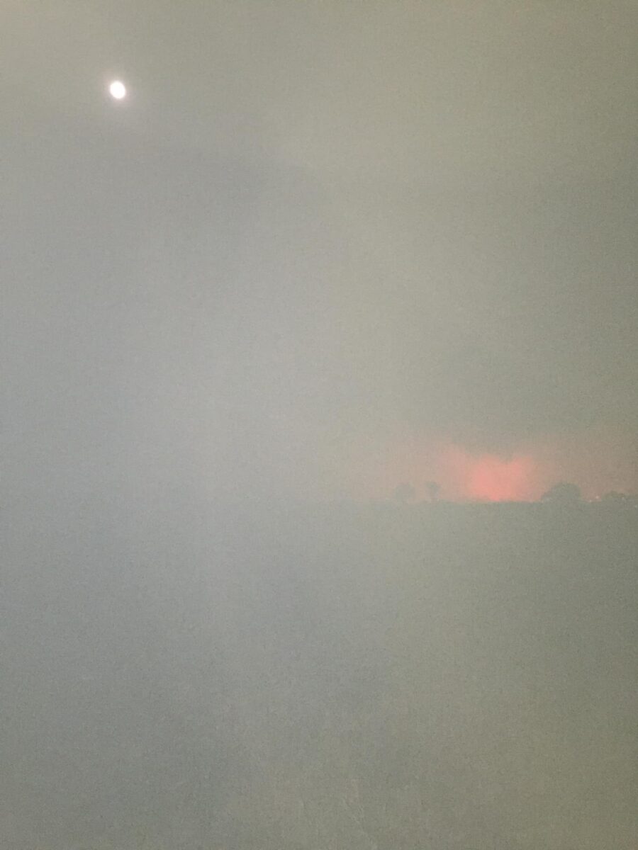Λόγω των πυκνών καπνών που απλώνονται στην περιοχή, δεν υπάρχει ορατότητα με τα εναέρια μέσα να αντιμετωπίζουν δυσκολίες από το πρωί και να μην μπορούν να επιχειρήσουν.