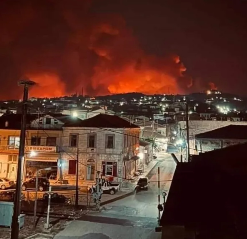 Συγκλονιστικές είναι οι εικόνες από τη νύχτα της Πέμπτης, όπου οι φλόγες βρίσκονται ένα βήμα πριν το Σουφλί.