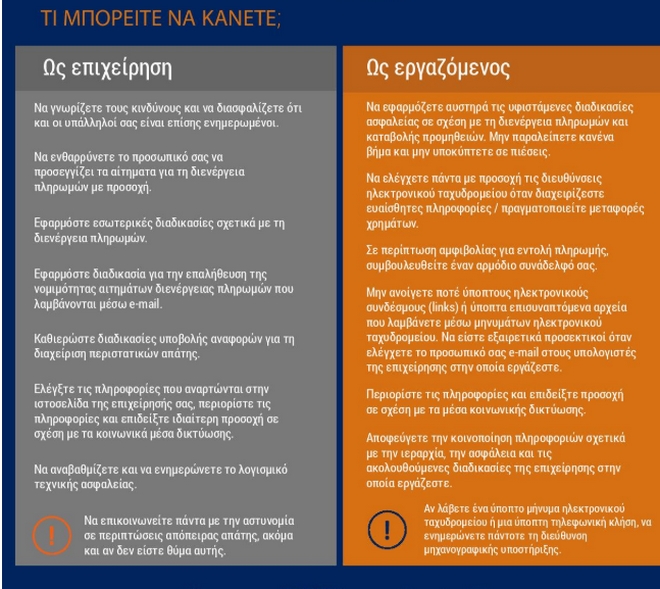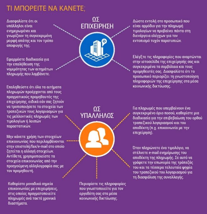 - Να διασφαλίζετε ότι οι υπάλληλοί σας είναι ενημερωμένοι και προσεγγίζουν τα αιτήματα για τη διενέργεια πληρωμών με προσοχή.