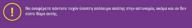 - Απευθυνθείτε στις αρμόδιες αστυνομικές αρχές όταν αντιληφθείτε ότι πέσατε θύμα απάτης.