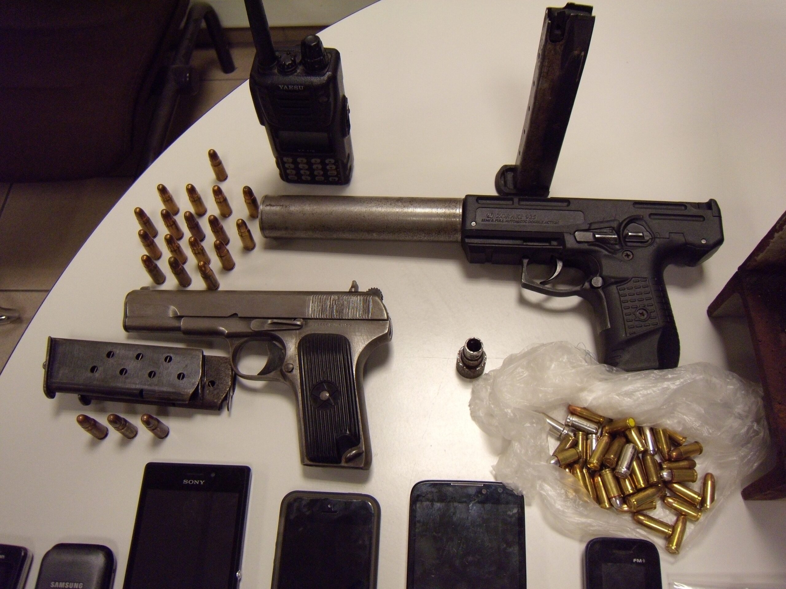 Πρόκειται για τέσσερις Αλβανούς (3 άντρες- 1 γυναίκα), ηλικίας 33, 23, 38 και 29 ετών αντίστοιχα, σε βάρος των οποίων σχηματίσθηκε δικογραφία, για τα κατά περίσταση αδικήματα της παράβασης του Νόμου περί εξαρτησιογόνων ουσιών, Νόμου περί όπλων και για πλαστογραφία πιστοποιητικών.