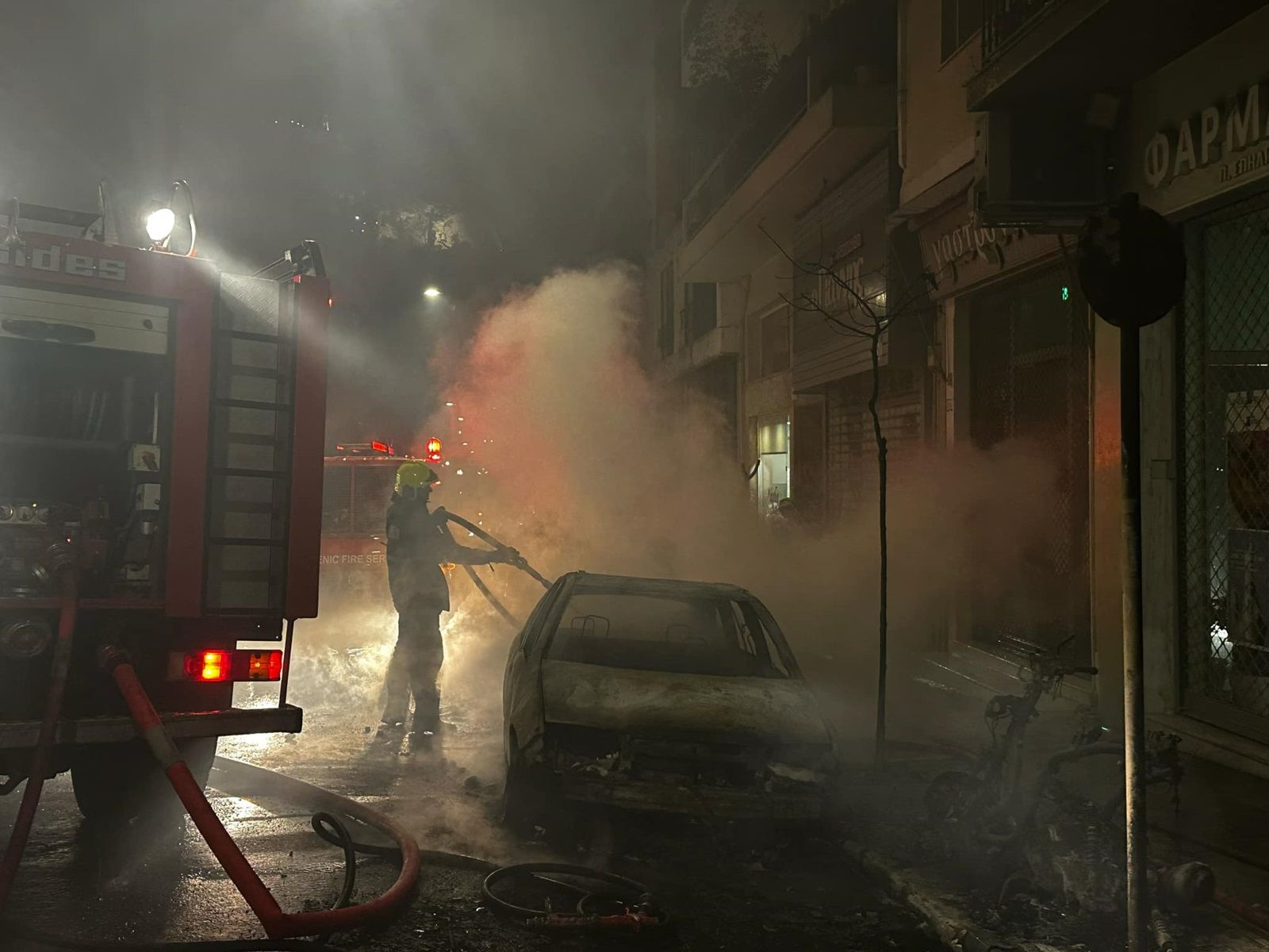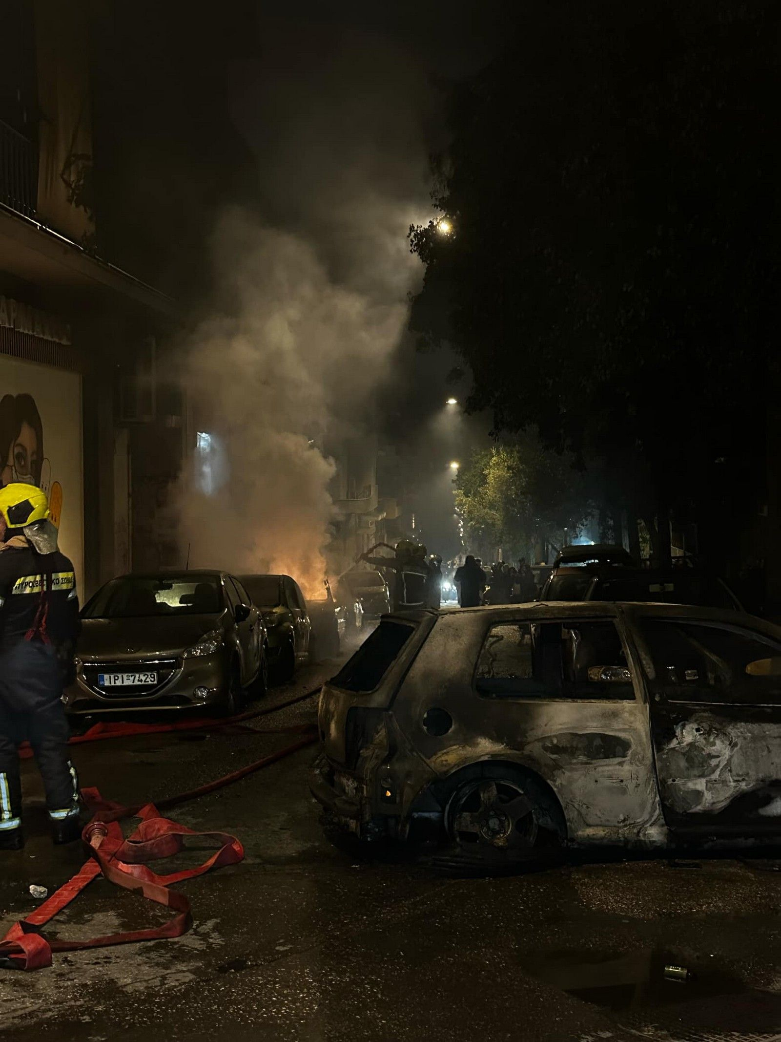Η Πυροσβεστική, επιχείρησε για την κατάσβεση των οχημάτων και των κάδων με 15 πυροσβέστες και 7 οχήματα.