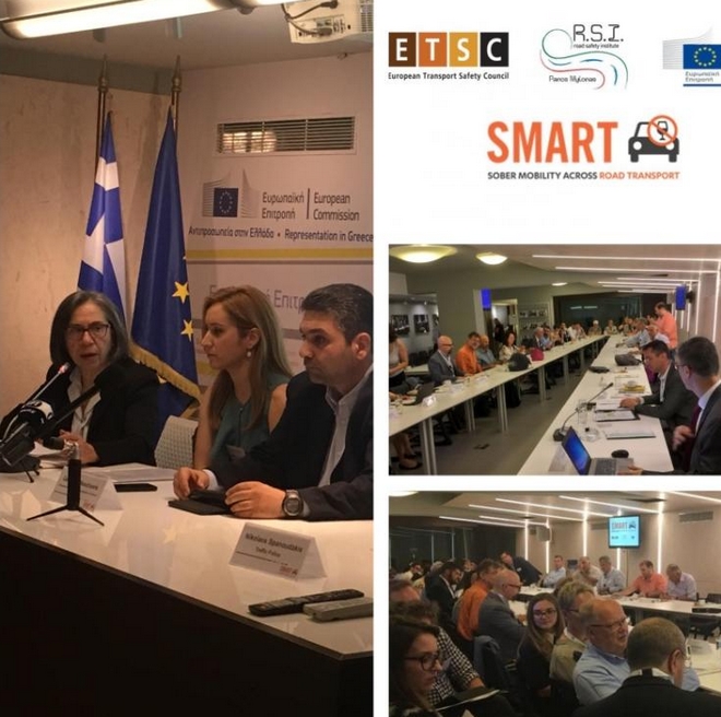 Αυτά ήταν μερικά από τα στοιχεία που παρουσιάστηκαν στην Αντιπροσωπεία της Ευρωπαϊκής Επιτροπής στην Ελλάδα, σε διεθνή Ημερίδα για την αντιμετώπιση του φαινομένου της οδήγησης υπό την επήρεια του αλκοόλ. Η Ημερίδα υλοποιήθηκε στο πλαίσιο του έργου SMART (Sober Mobility Across Road Transport), από το Ινστιτούτο Οδικής Ασφάλειας «Πάνος Μυλωνάς» και το Ευρωπαϊκό Συμβούλιο Ασφάλειας Μεταφορών (ETSC), με την ευγενική υποστήριξη της Αντιπροσωπείας της Ευρωπαϊκής Επιτροπής στην Ελλάδα.