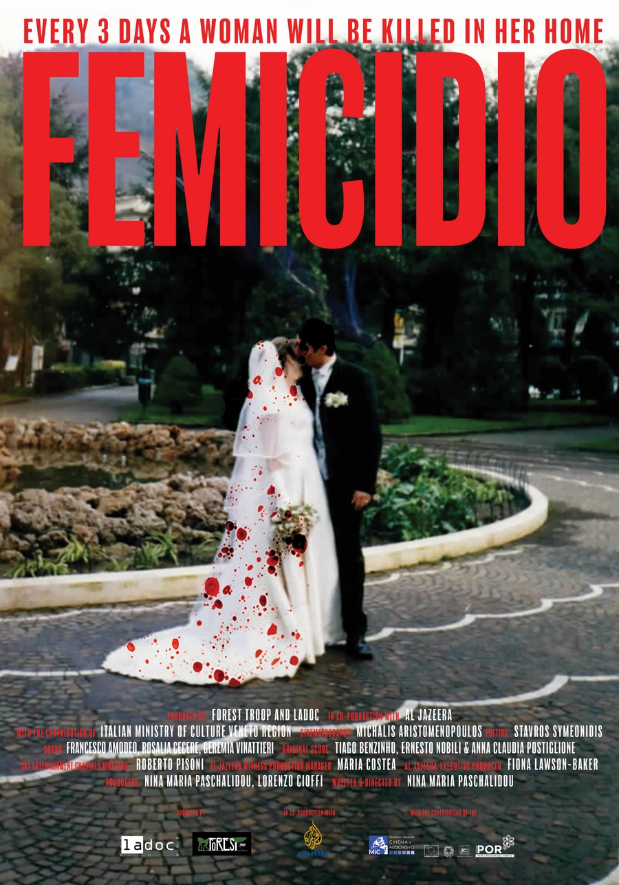 Στο ντοκιμαντέρ FEMICIDIO ειδικοί, κοινωνιολόγοι και πολιτικοί καταθέτουν τις απόψεις τους για το φλέγον ζήτημα των γυναικοκτονιών*, που αντιμετωπίζει όχι μόνο η Ιταλία αλλά και πολλές χώρες στον κόσμο. Η ταινία, η οποία είναι συμπαραγωγή με το κανάλι Al Jazeera, έκανε πρεμιέρα στο Διεθνές Διαγωνιστικό τμήμα του Φεστιβάλ Ντοκιμαντέρ της Θεσσαλονίκης τον Μάρτιο 2022.