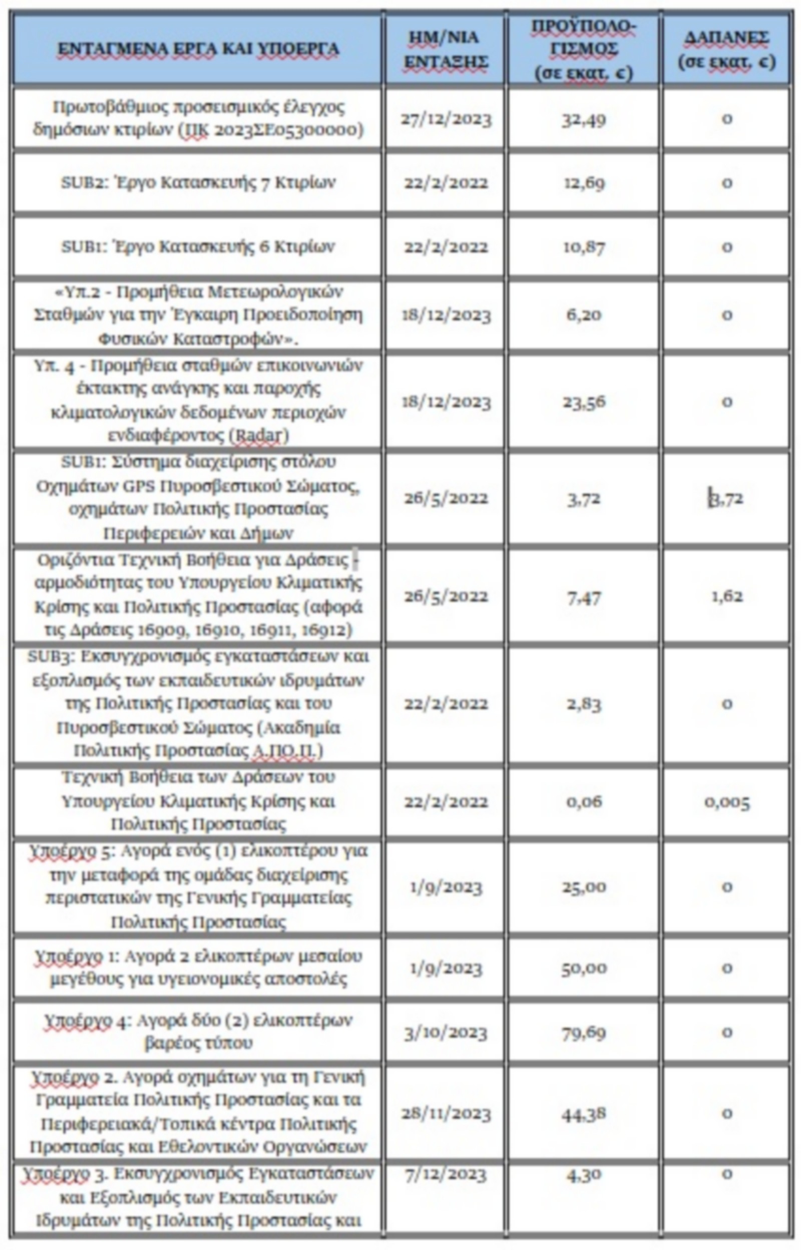 Προϋπολογισμός και Δαπάνες Ενταγμένων Έργων Υπουργείου Κλιματικής Κρίσης και Πολιτικής Προστασίας έως 31/03/2024