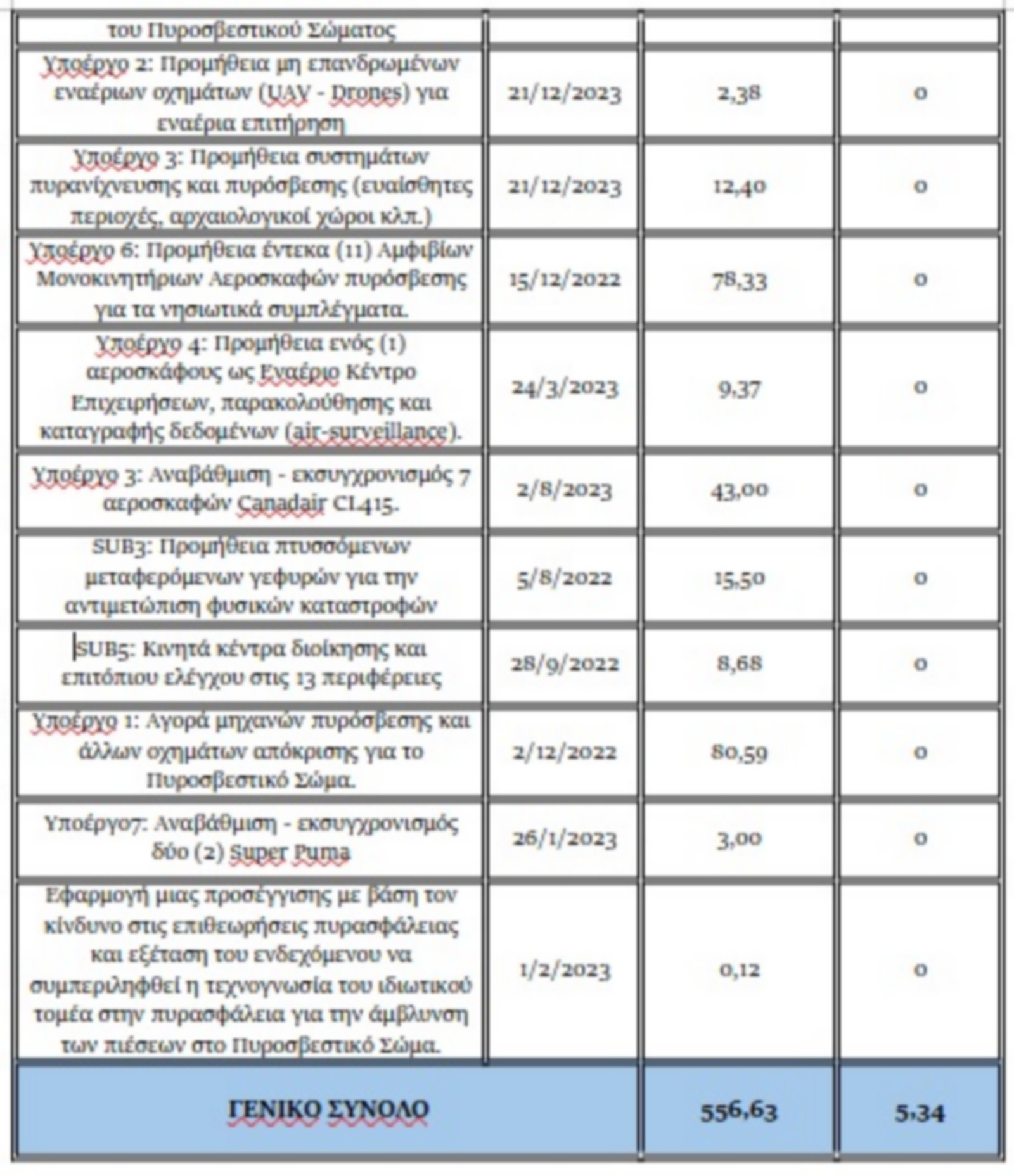 Έχει ιδιαίτερο ενδιαφέρον να σημειώσουμε ότι οι δαπάνες που έχουν πραγματοποιηθεί αφορούν στα δύο έργα συμβουλευτικής υποστήριξης του Υπουργείου καθώς και το υποέργο «Σύστημα διαχείρισης στόλου Οχημάτων GPS Πυροσβεστικού Σώματος, οχημάτων Πολιτικής Προστασίας Περιφερειών και Δήμων».