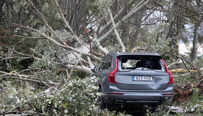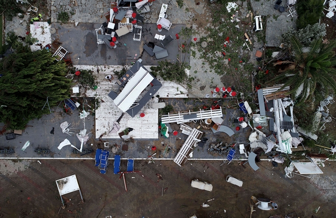 Το μέγεθος της καταστροφής αποκαλύφθηκε σε όλο το μεγαλείο του με το πρώτο φως της ημέρας. Ξεριζωμένα δέντρα, σπασμένες τζαμαρίες, ξηλωμένες στέγες, διαλυμένα καταστήματα, αναποδογυρισμένα αυτοκίνητα, ανακατεμένες παραλίες, συνθέτουν ένα “βομβαρδισμένο” τοπίο μετά τις δύσκολες ώρες που βίωσε η περιοχή.